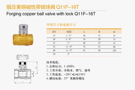 鍛壓黃銅磁性帶鎖球閥 Q11F-16T 的技術規范可歸納如下: