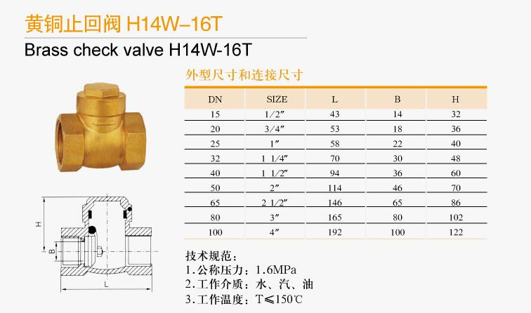 黃銅止回閥H14W-16T技術規范: