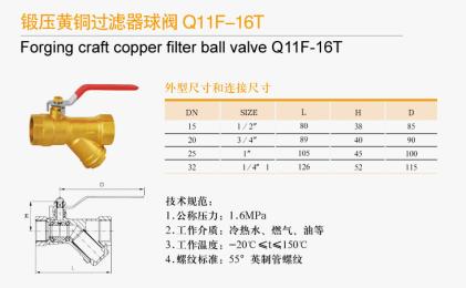 鍛壓黃銅過濾器球閥Q11F-16T技術(shù)規(guī)范: